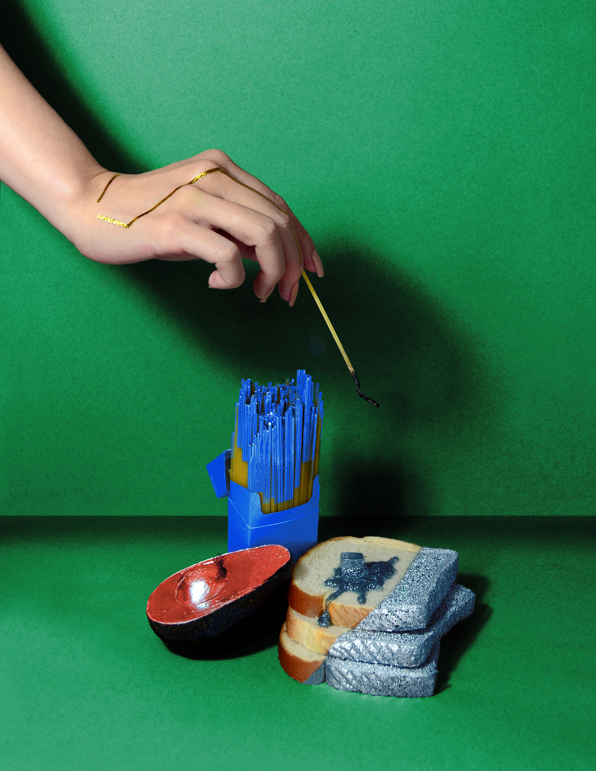 The series of images that convey a literal meaning; Luxury + Food. The theme was visualized through everyday foods and objects in a beautiful and playful way that things are very rarely as they seem.